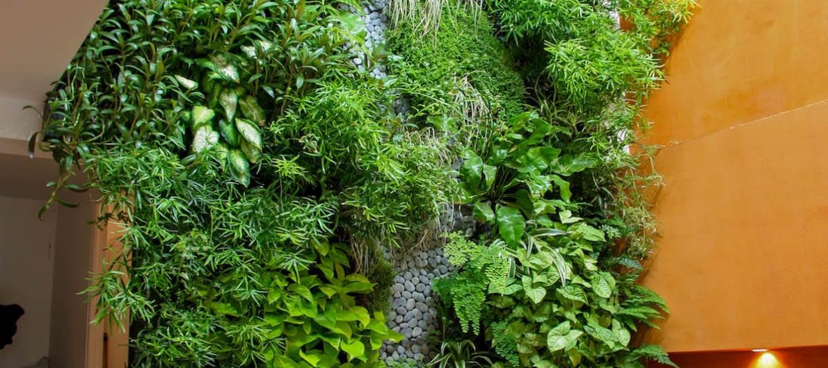 Jardin vertical intérieur : Une rivière de galet surgit d’un mur végétal !